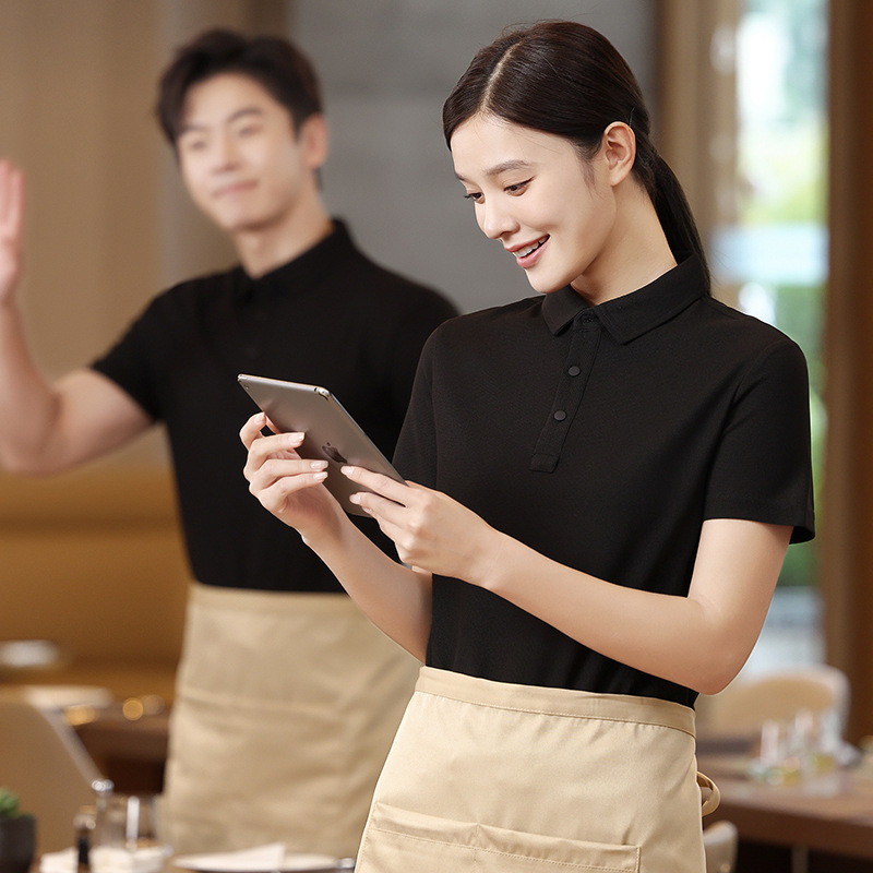 Pakaian kerja pelayan Cina, pakaian restoran Cina dan Barat pria ringan bernapas menyerap keringat hotel pelayan pakaian kerja kustomisasi