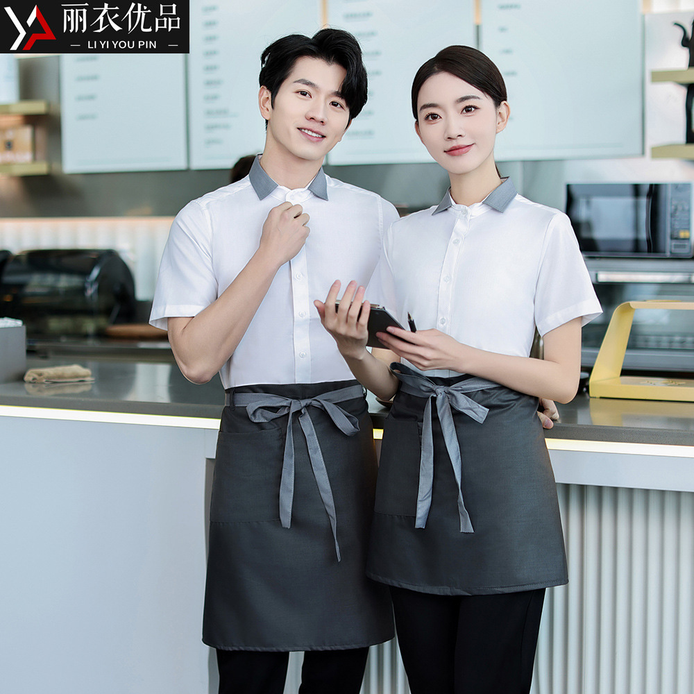 Pakaian kerja pelayan katering kaus lengan pendek dibuat teh susu pot panas restoran kopi restoran pakaian kerja musim panas cetak pakaian