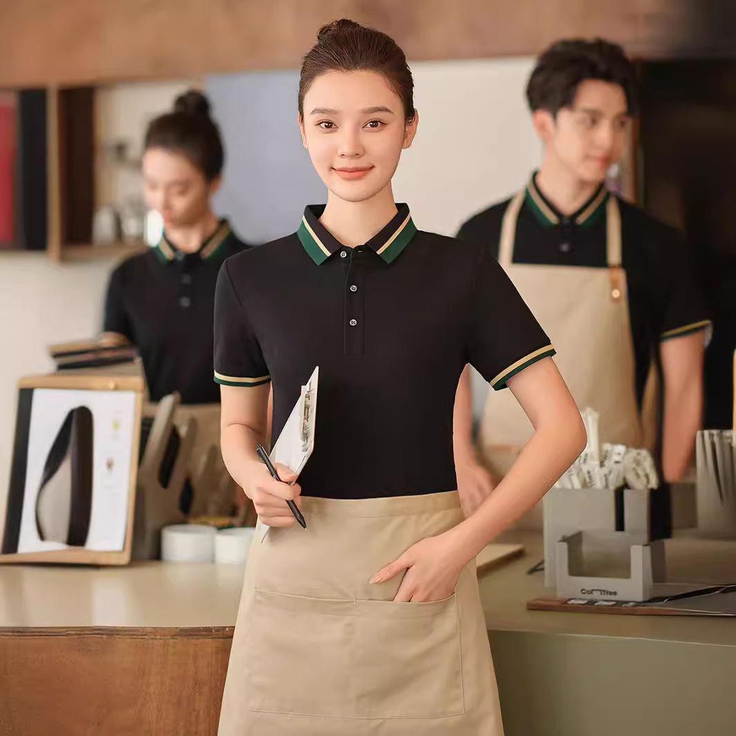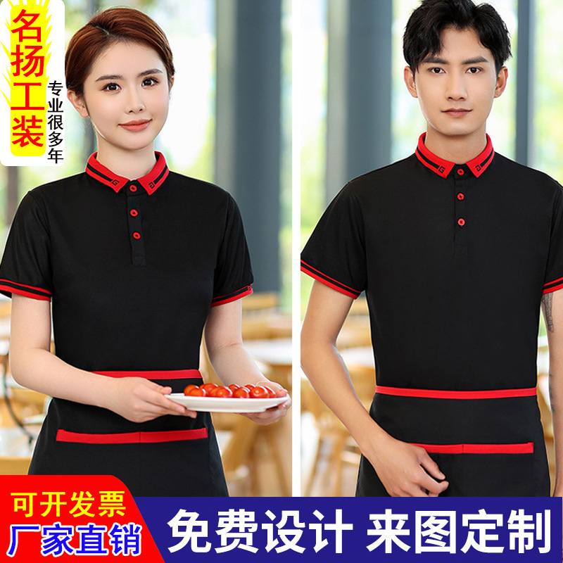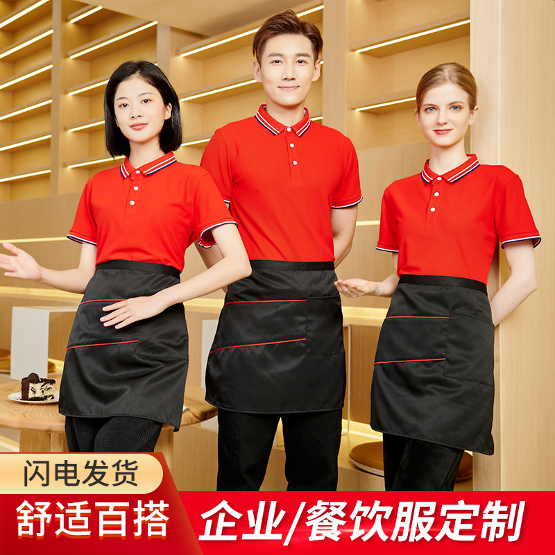 Baju kerja perusahaan katering T-shirt lengan pendek, kemeja polo grup pelayan toko teh susu pot panas restoran anggur musim panas