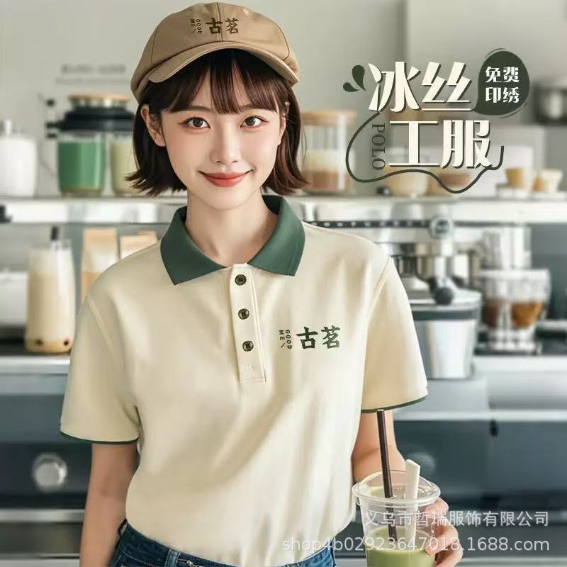 Pakaian Kerja Polo Katering Sutra Es Pakaian Kerja Kerah Lover Teh Susu Lengan Pendek Logo Pakaian Kerja Pelayan Kelompok