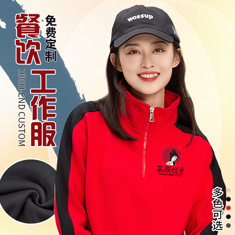 Katering pelayan pakaian kerja berdiri kerah sweater disesuaikan musim gugur dan musim dingin plus beludru mantel supermarket teh susu pot panas toko pakaian kerja
