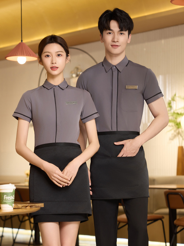 Baju kerja pelayan hotel katering pria wanita, baju musim panas lengan pendek restoran restoran Barat restoran lengan pendek