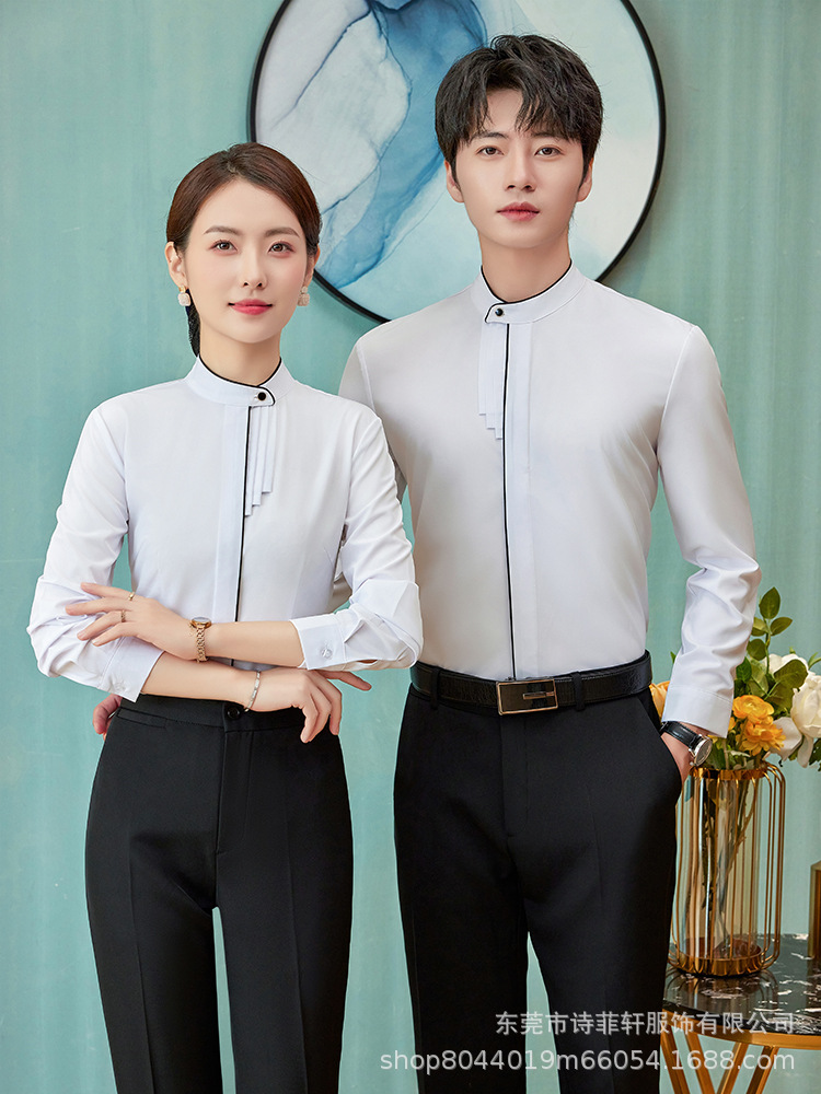 Baju pelayan Hotel pria dan wanita, baju bisnis yang sama musim gugur lengan panjang, baju overall LOGO bordir