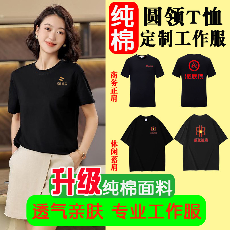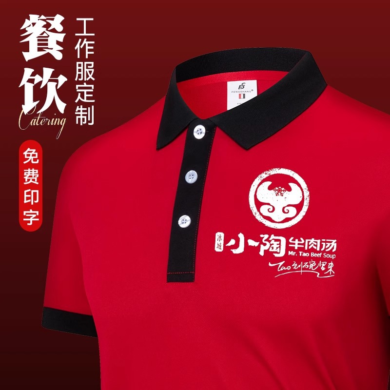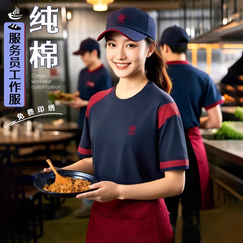 Pelayan baju kerja lengan pendek katering barbekyu hot pot restoran leher bulat kemeja iklan perkakas katun kustomisasi