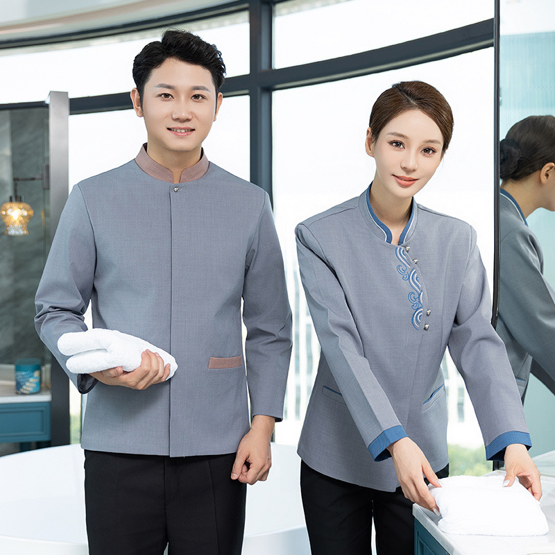 Pakaian kerja membersihkan hotel wanita lengan panjang ruang tamu hotel properti rumah tangga bibi pelayan kerja pria musim dingin cetakan