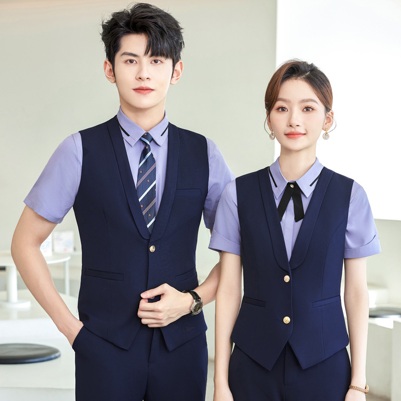 Setelan pakaian kerja pria dan wanita, rompi yang sama untuk bioskop hotel meja depan pakaian kerja bar ktv pelayan