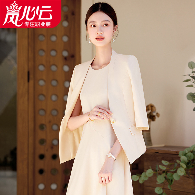 Pakaian Kerja Elegan Pramugari Model Tipis Musim Semi dan Musim Panas Setelan Pakaian Kerja Staf Meja Depan Hotel Slim Fit Terlihat Kurus