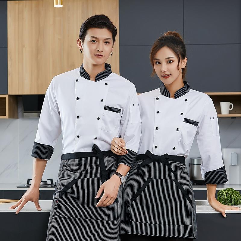 Baju kerja koki lengan pendek, pakaian kerja pelayan restoran, baju kerja koki dan restoran lengan pendek