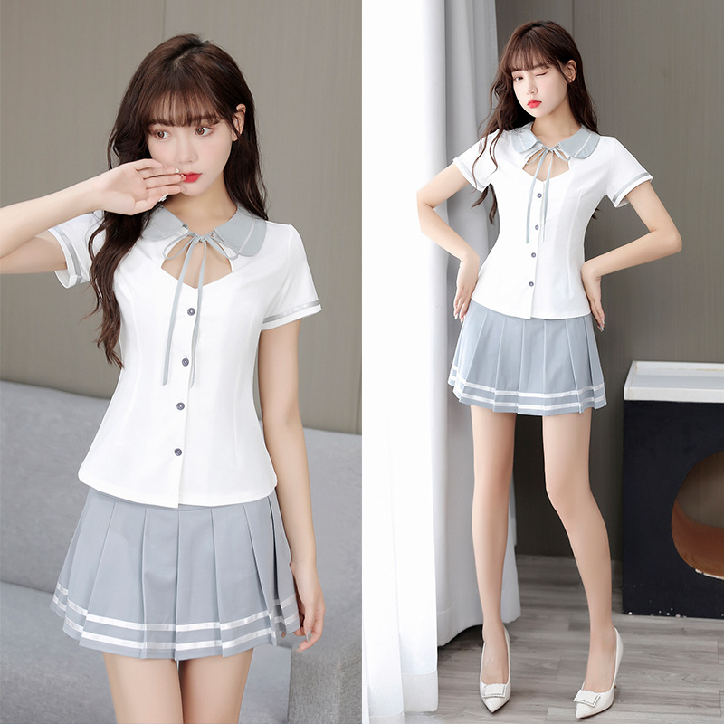Baju baru pijat kaki pedikur teknisi pakaian kerja Sauna wanita pakaian kerja rok berlipat gaya kuliah setelan 8219