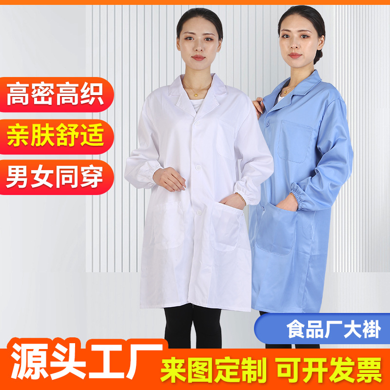 Pabrik Makanan mantel biru dan putih pakaian kerja bebas debu makanan bengkel elektronik laboratorium pria dan wanita pakaian tahan debu mantel bersih