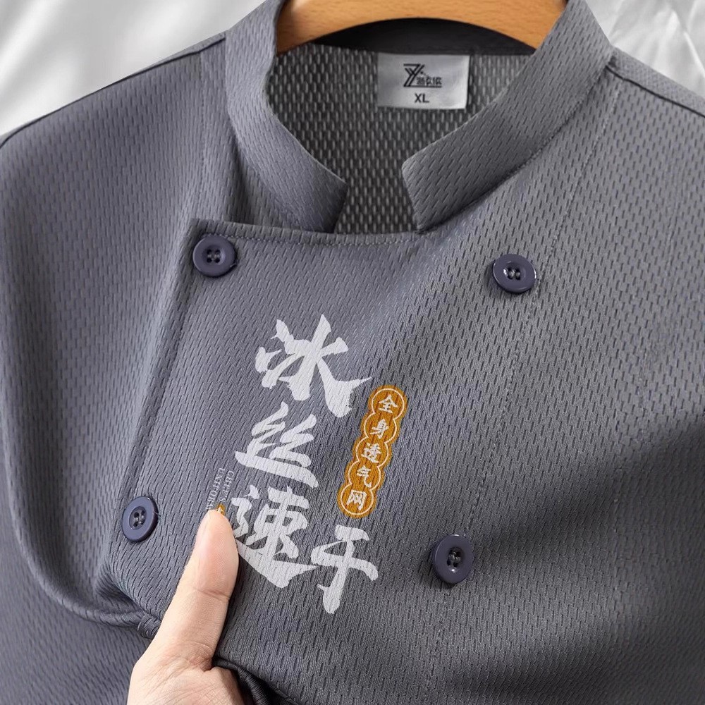 Pakaian kerja koki makan pria, pakaian dapur membuat kue lengan pendek tipis musim panas dapur Hotel restoran kantin