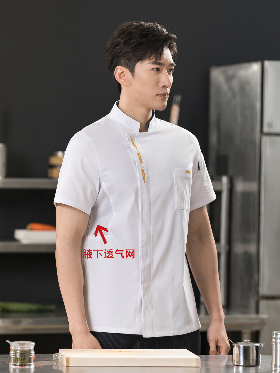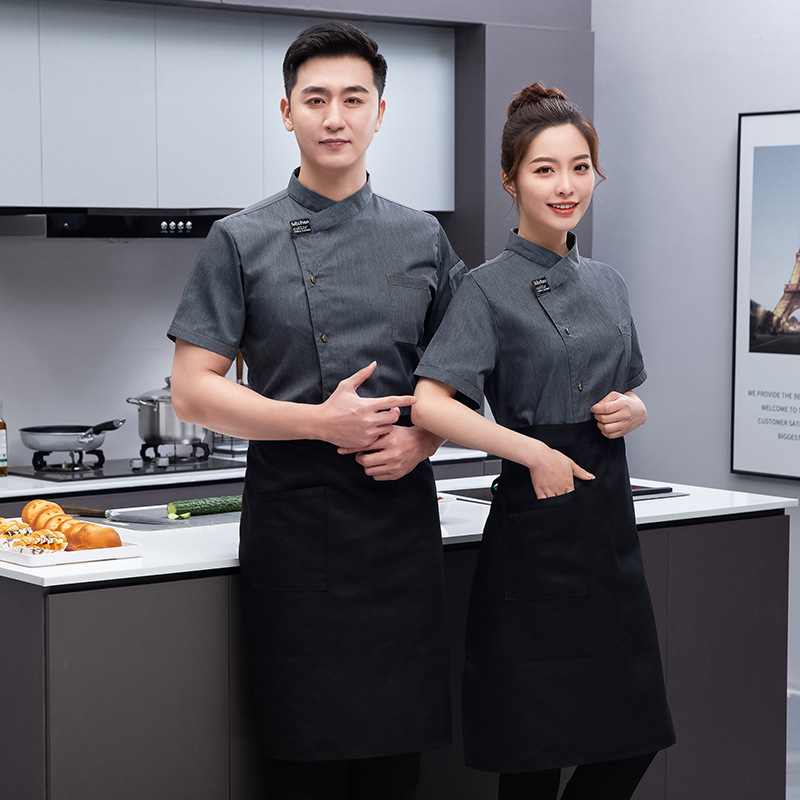 Pakaian kerja koki pria, baju koki dapur restoran Barat lengan pendek untuk lelaki grosir