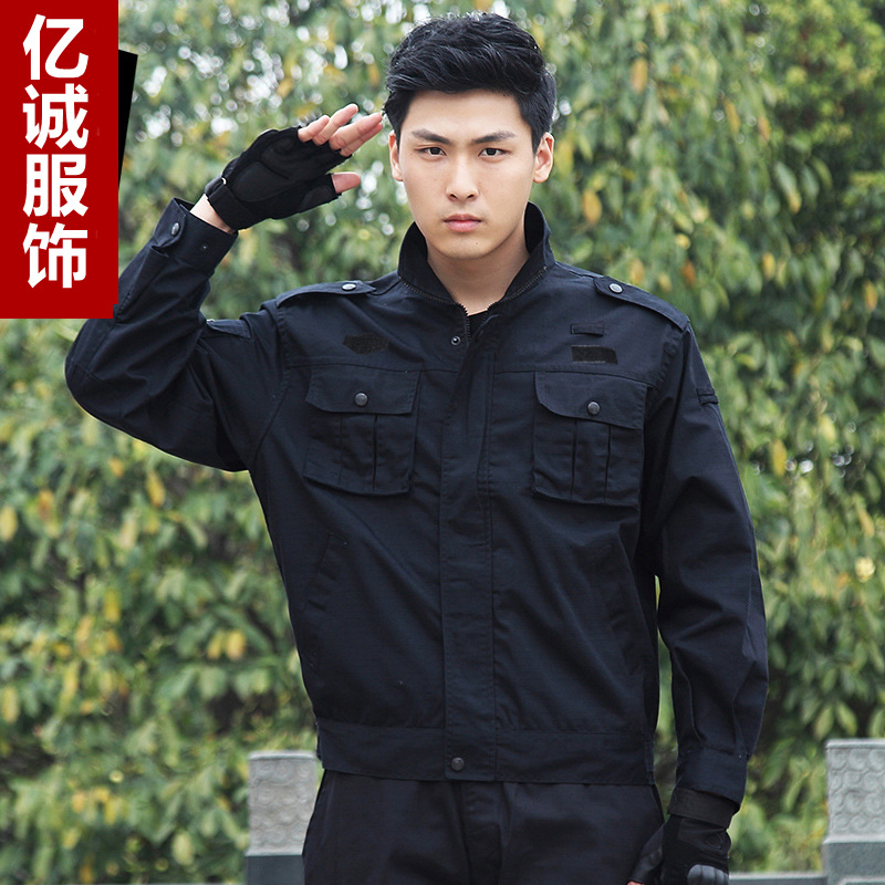 Pakaian keamanan latihan pria, pakaian seragam kerja jaket latihan keamanan musim semi, musim gugur dan musim dingin