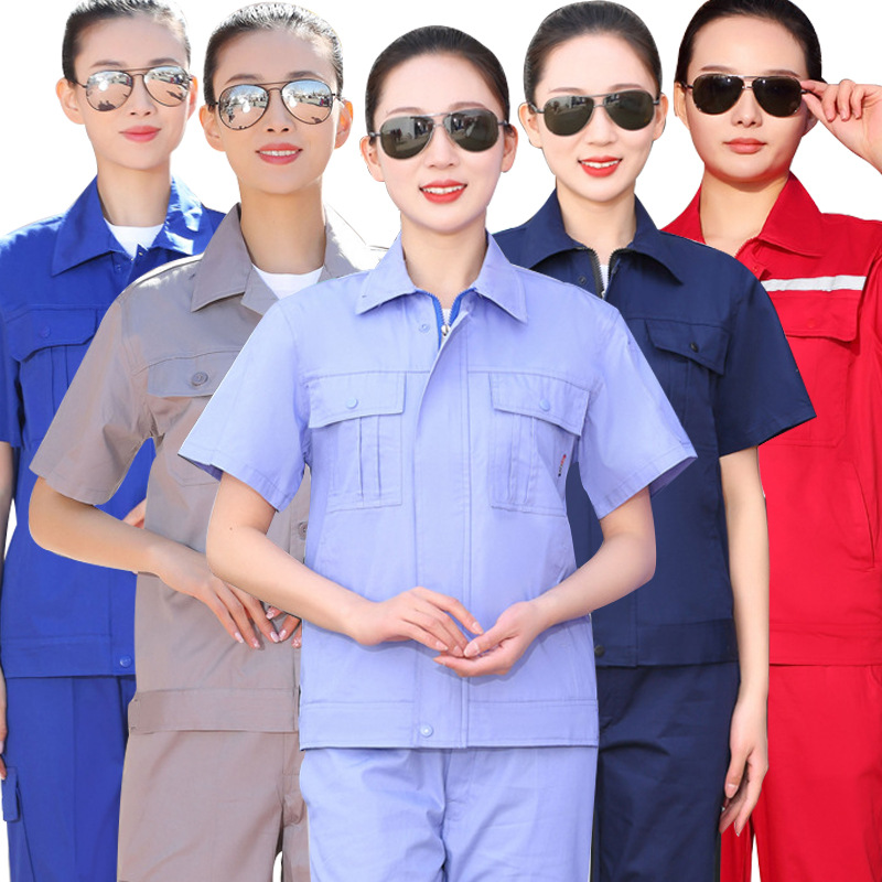 Setelan baju kerja lengan pendek, musim panas katun poliester tipis warna solid pakaian kerja lengan panjang perbaikan otomatis tahan aus pakaian kerja pabrik pakaian kerja pakaian pelindung tenaga kerja