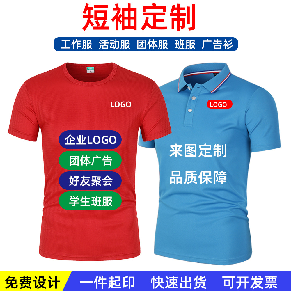 Kaus lengan pendek leher bulat LOGO cetak kerah cepat kering pakaian kerja POLO baju iklan kustomisasi kaus perdagangan luar negeri