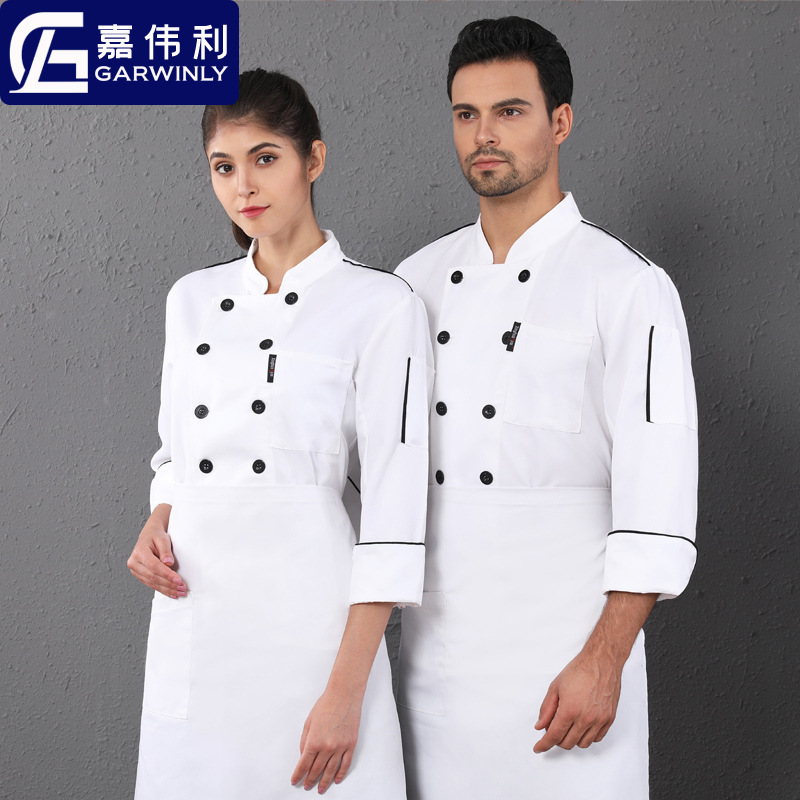 Pakaian kerja lengan panjang, gaya baru pakaian koki hotel restoran pribadi pot panas restoran pakaian kerja dapur toko memanggang