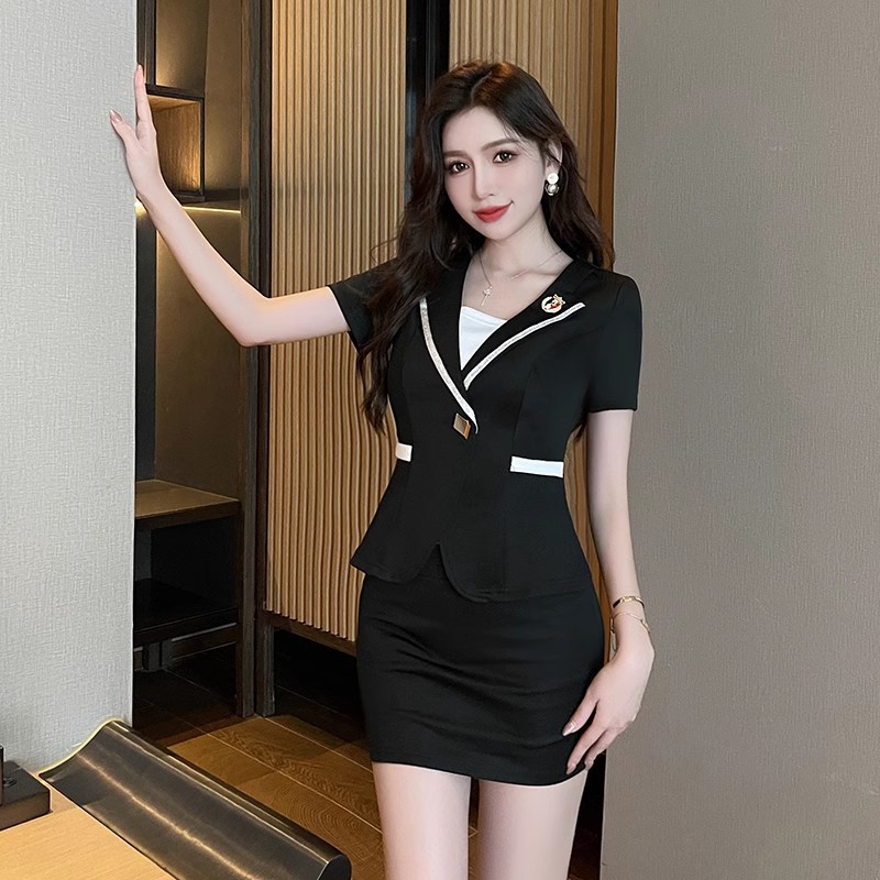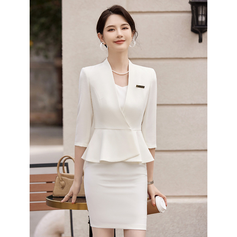Setelan Rok Pendek Profesional Kelas Atas Pakaian Kerja Salon Kecantikan Konsultan Medis Meja Depan Elegan Modis Musim Semi dan Musim Gugur Wanita