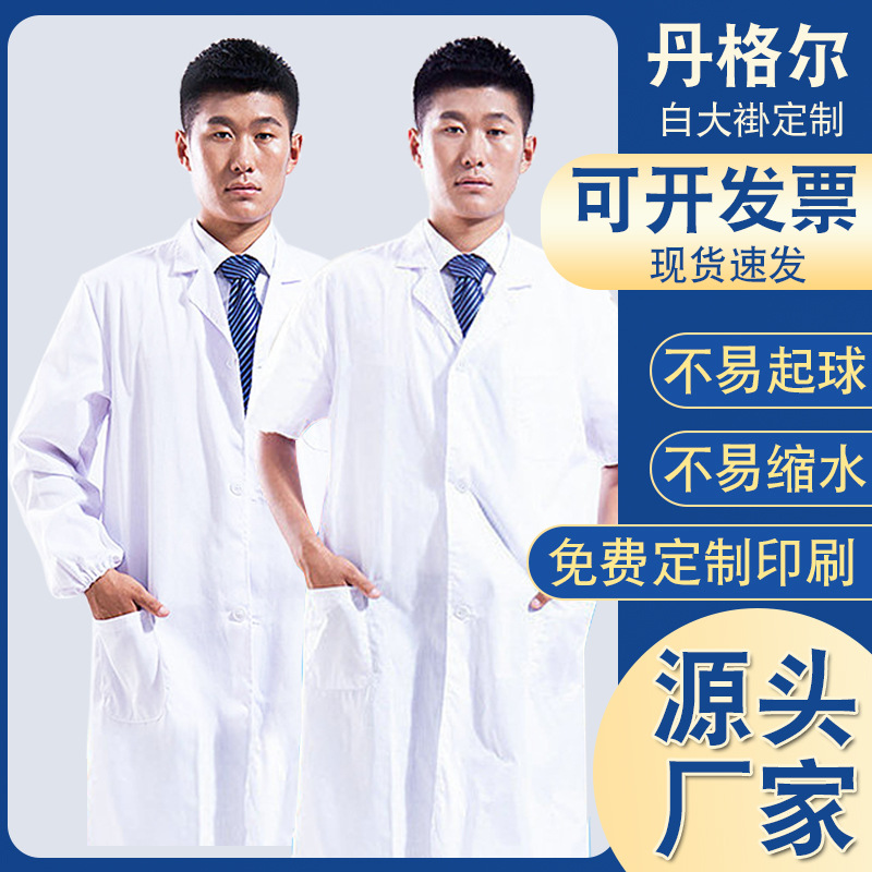 Stok tersedia grosir gaun putih lengan pendek pakaian eksperimental gaun putih dokter overall lengan panjang pria dan wanita gaya yang sama