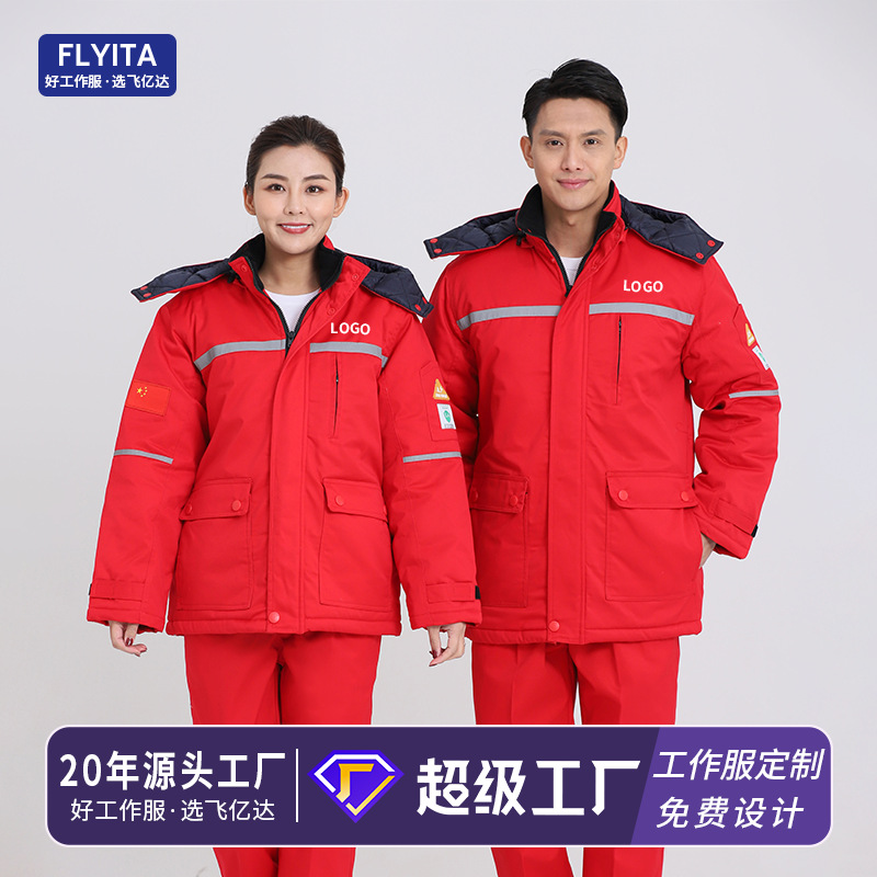 Pakaian Perlindungan Tenaga Kerja Anti Statis Pakaian Kerja Benang Reflektif Anti Asam Alkali CNOOC Ekstra Tebal Musim Dingin Pakaian Pelindung Kapas