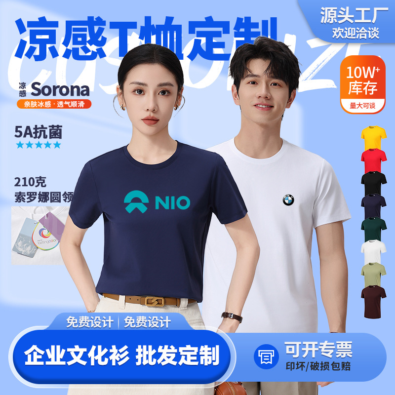 Kaus lengan pendek katun kerah bulat cepat kering T-shirt lengan pendek pakaian kerja diy baju iklan kelas logo cetak