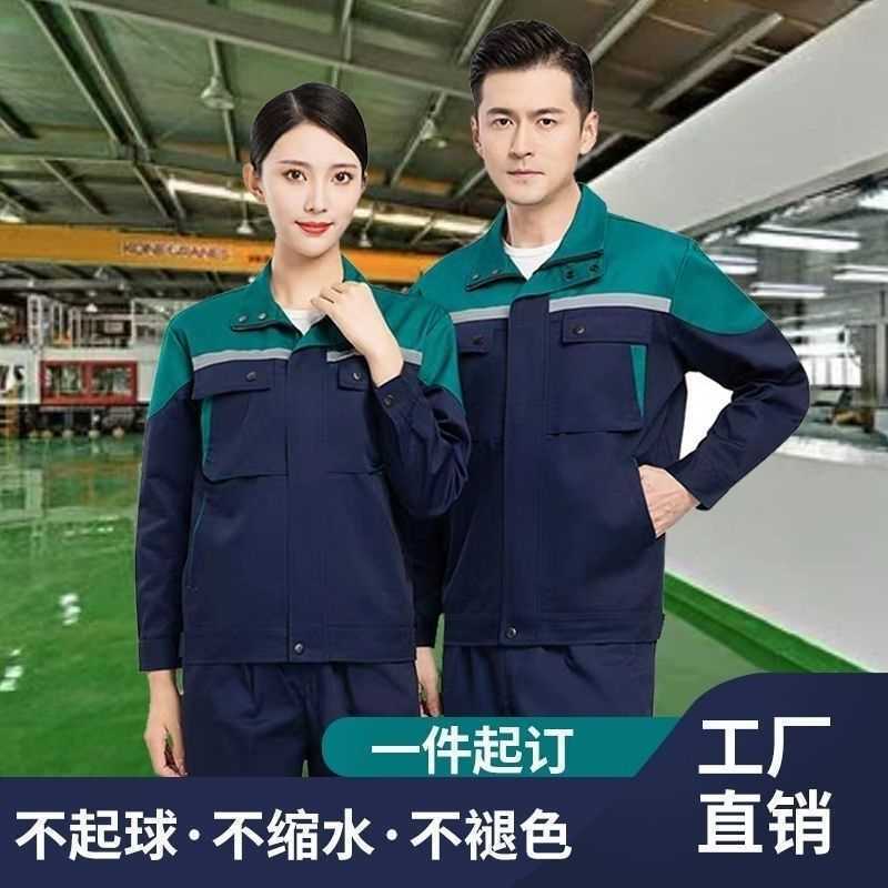 Pakaian Kerja Katun Poliester Lengan Panjang Kerah Tegak Musim Semi Musim Gugur Setelan Pakaian Kombinasi Warna Properti Tahan Aus Tahan Kotor Pria Wanita Kustom Pabrik