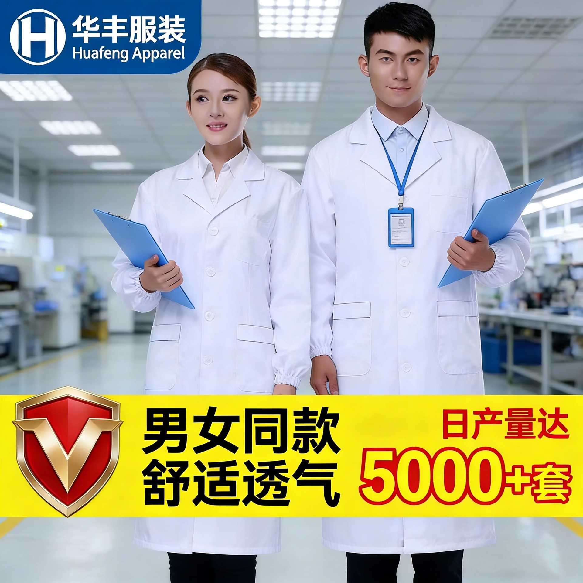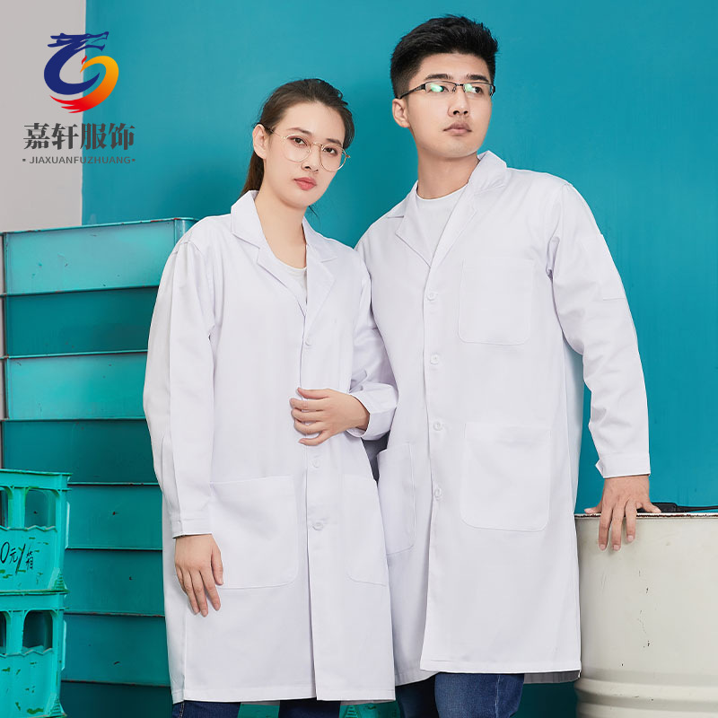 Baju perawat laboratorium baju kerja farmasi gaun putih katun poliester lengan panjang pakaian dokter medis putih gaun putih