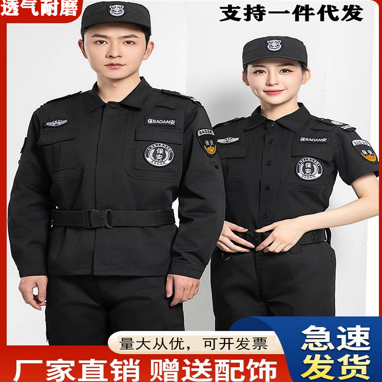 Pakaian Kerja Keamanan Baru 2025 Setelan Musim Semi dan Musim Gugur Pakaian Musim Panas Keamanan Pria Wanita Pakaian Musim Gugur dan Musim Dingin Seragam Keamanan Lengan Pendek Warna Hitam