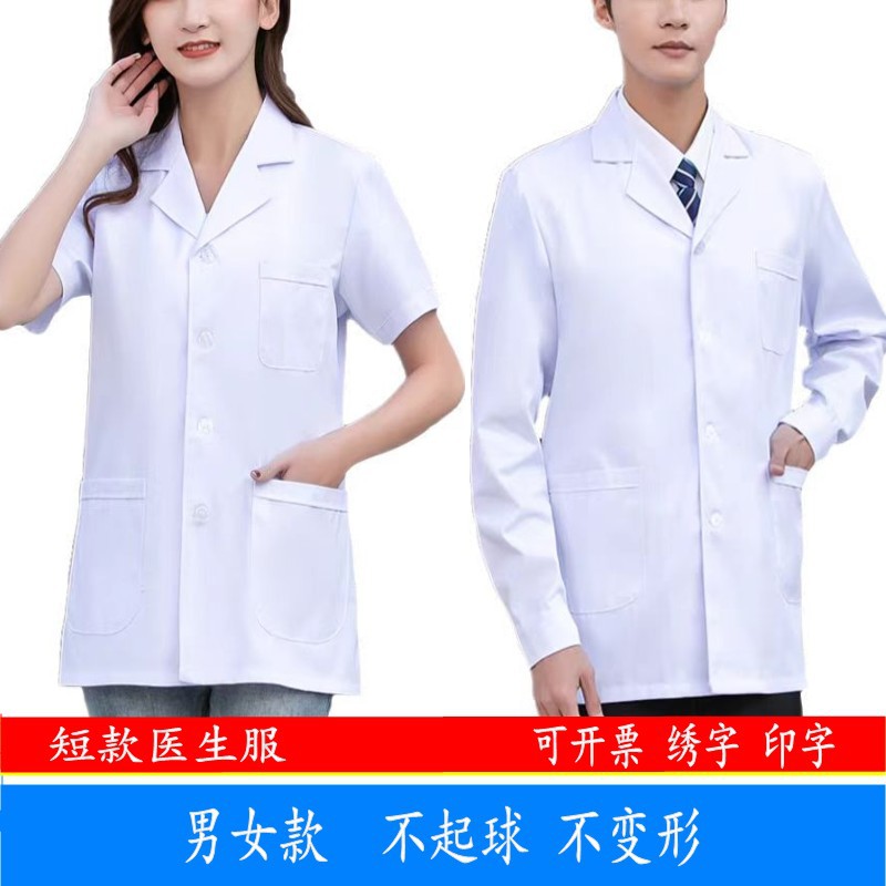 Mantel Putih Pakaian Kerja Lengan Panjang Dokter Pria Pakaian Isolasi Model Pendek Laboratorium Lengan Pendek Musim Panas