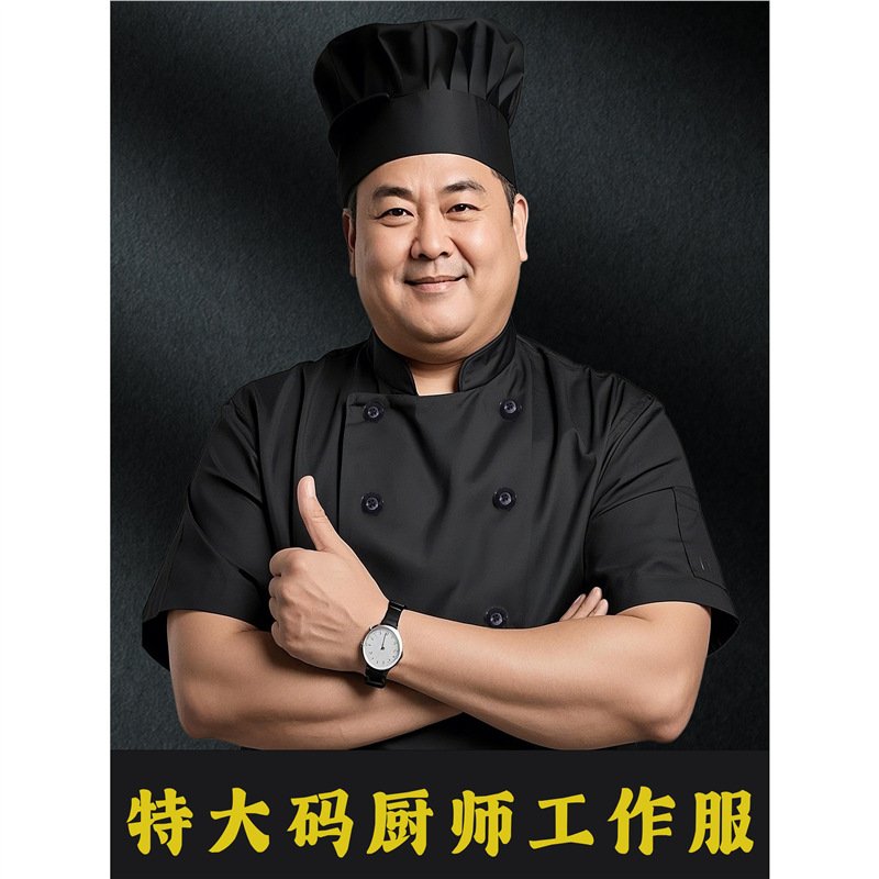 Pakaian Kerja Koki Hitam Pakaian Koki Ukuran Super Besar Plus Plus Plus Plus Plus Plus 300 kg Restoran Bakery Hotel Lengan Pendek