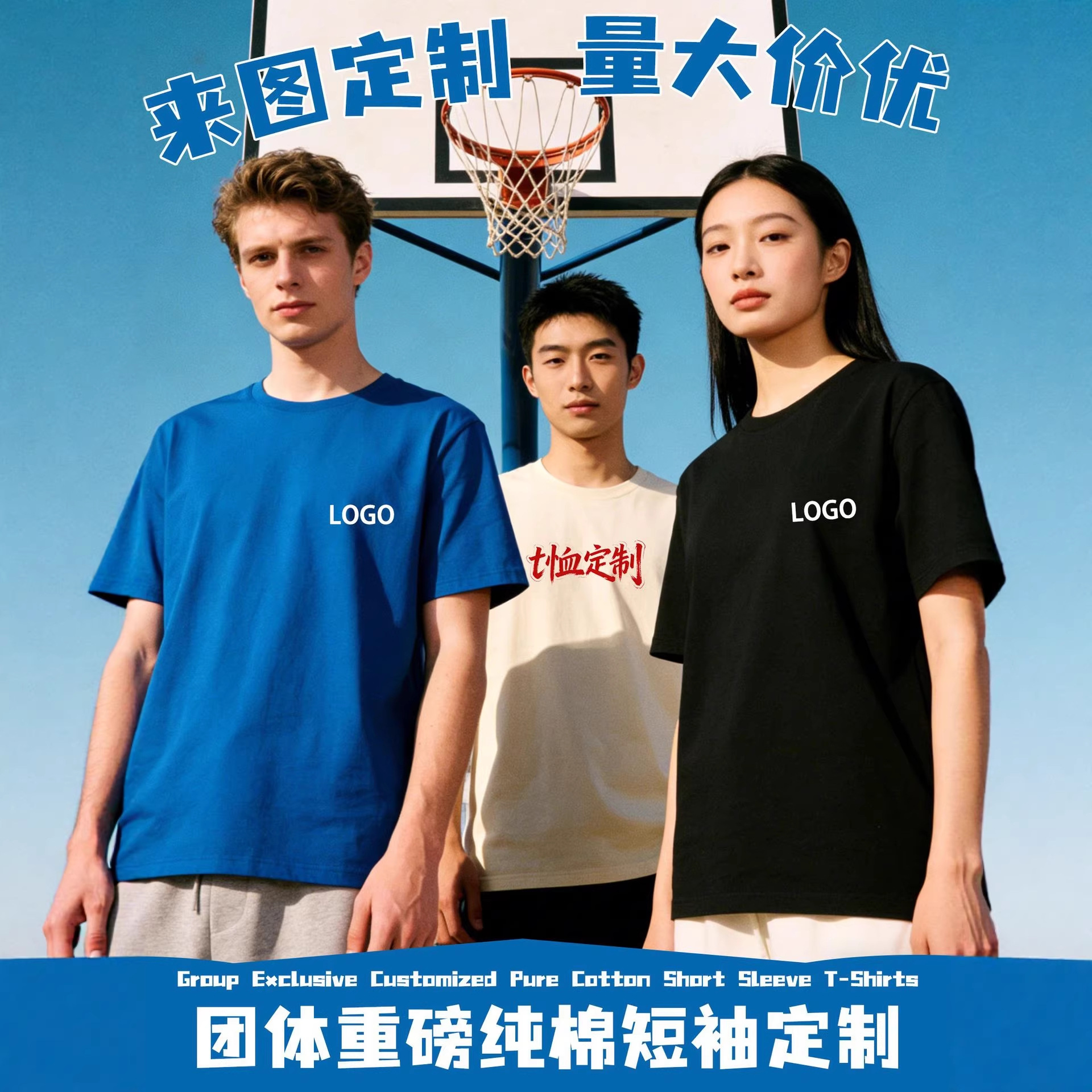 230 Gram Kaos Oblong Katun Murni Berat Baju Iklan Budaya Kustom Pakaian Kerja Perusahaan Tim Katering Lengan Pendek Bercetak Logo