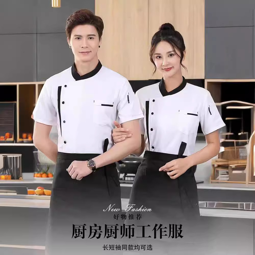 Pakaian kerja koki restoran dapur pria dan wanita, baju koki restoran lengan panjang lengan pendek musim semi dan musim gugur musim panas