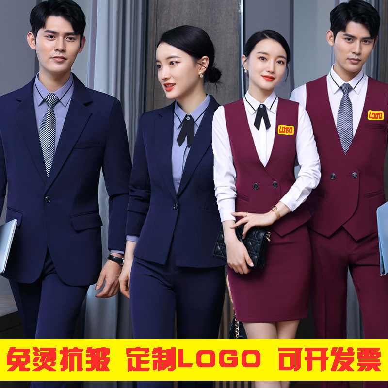 Musim Semi dan Musim Gugur Pakaian Profesional Pria dan Wanita Wawancara Pakaian Formal Penerimaan Meja Depan Hotel KTV Pakaian Kerja Bank Minsheng