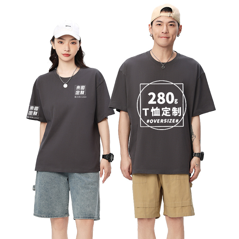 Katun berat lengan pendek 280g kaus longgar cetak baju kerja kustom kemeja iklan pasangan pakaian kerja disesuaikan