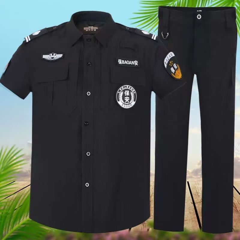 Kustom Eropa Amerika Keamanan Properti Kemeja Lengan Pendek Kustom Tipis Perdagangan Luar Negeri Cetak Bordir Logo Pakaian Kerja Cepat Kering Keamanan