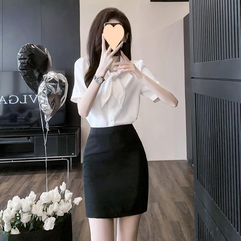 Setelan Pakaian Kerja Teknisi Pakaian Profesional Mandi Kaki Model Baru Musim Panas Wanita Kemeja Lengan Pendek Membentuk Badan Elegan Warna Putih Rok Membungkus Pinggul