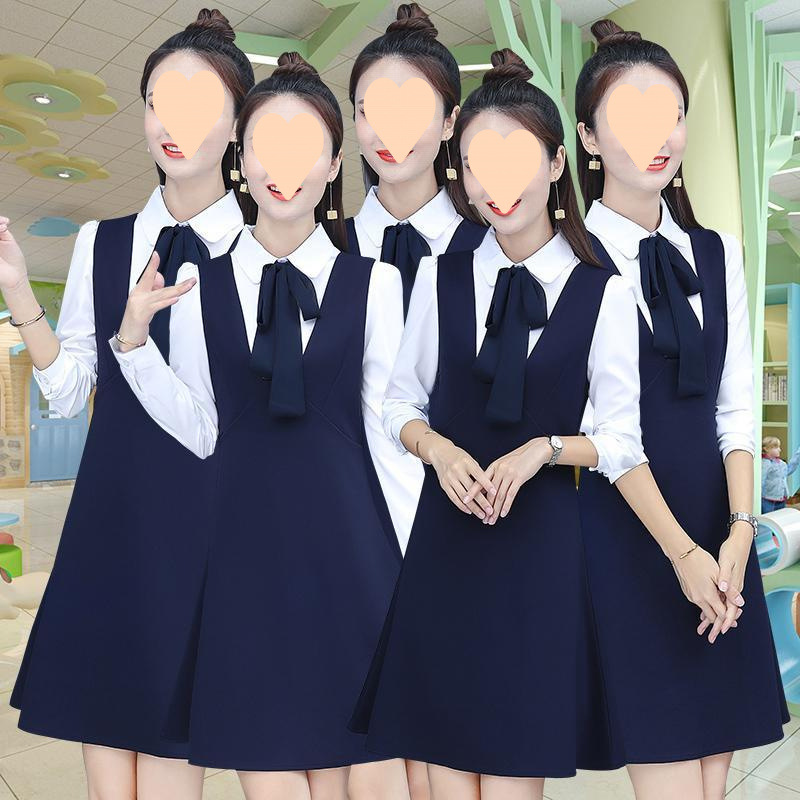 Pakaian Kerja Guru TK Gaun Taman Guru TK Pakaian Kerja Model Baru Musim Semi dan Musim Gugur Wanita Kemeja Wanita Lengan Panjang Set