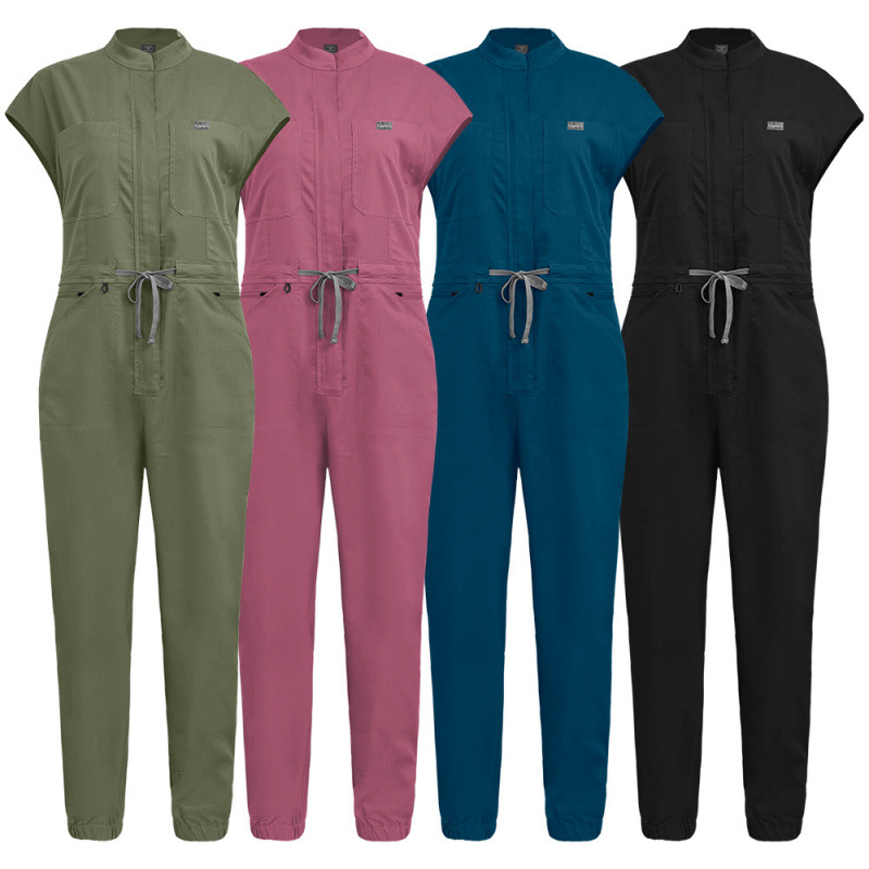 Scrub Medis Berkualitas Tinggi Kerah Tegak Lengan Terbang Ritsleting Ruang Operasi Dokter Dokter Perawat Pakaian Kerja