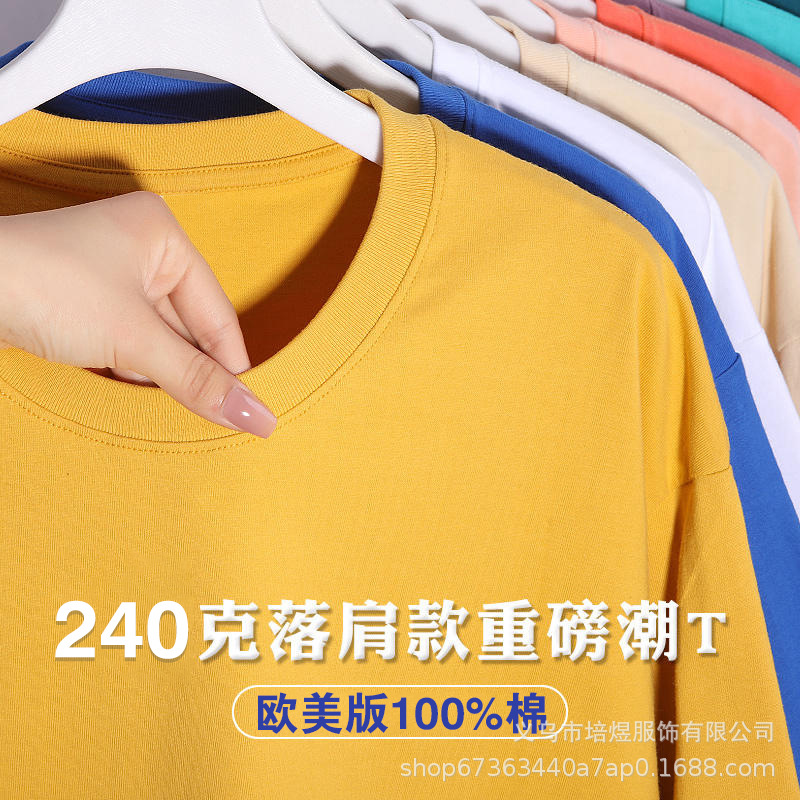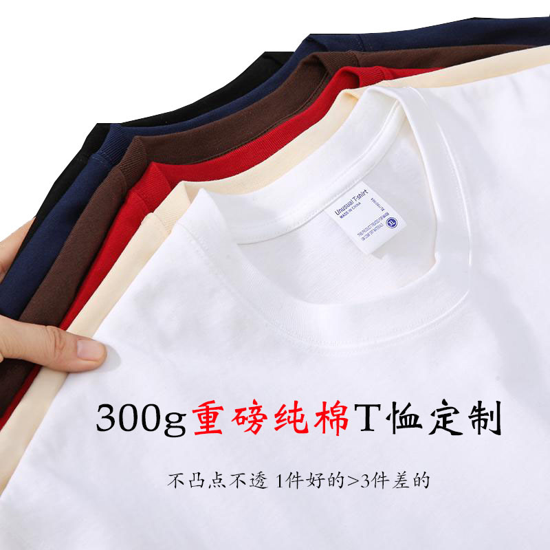 Kaus katun berat 300g logo kustom baju kerja lengan pendek leher bulat kemeja iklan cetak budaya kustom