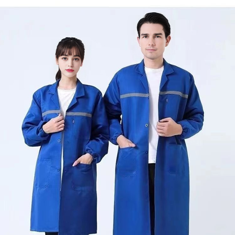 Pakaian Kerja Ritsleting Putih Pakaian Kerja Stiker Sulap Model Tipis Kerah Tegak Pakaian Eksperimental Pabrik Makanan