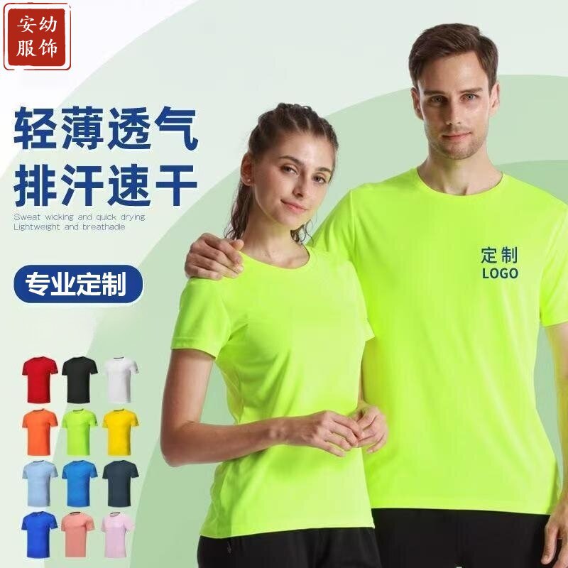Kemeja Iklan Kaus Lengan Pendek Kerah Bulat Olahraga Cepat Kering Musim Panas Pakaian Kerja Maraton Kustom Cetak Luar Ruangan
