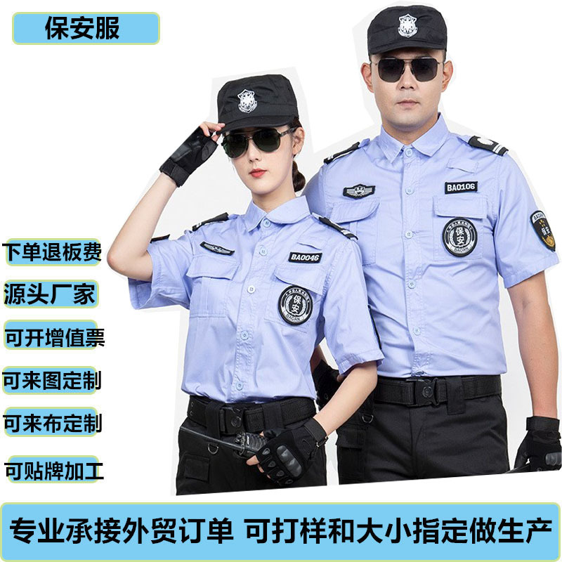 Kustom Eropa Amerika Keamanan Properti Kemeja Lengan Pendek Kustom Tipis Perdagangan Luar Negeri Cetak Bordir Logo Pakaian Kerja Cepat Kering Keamanan