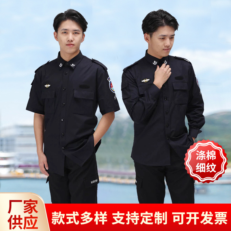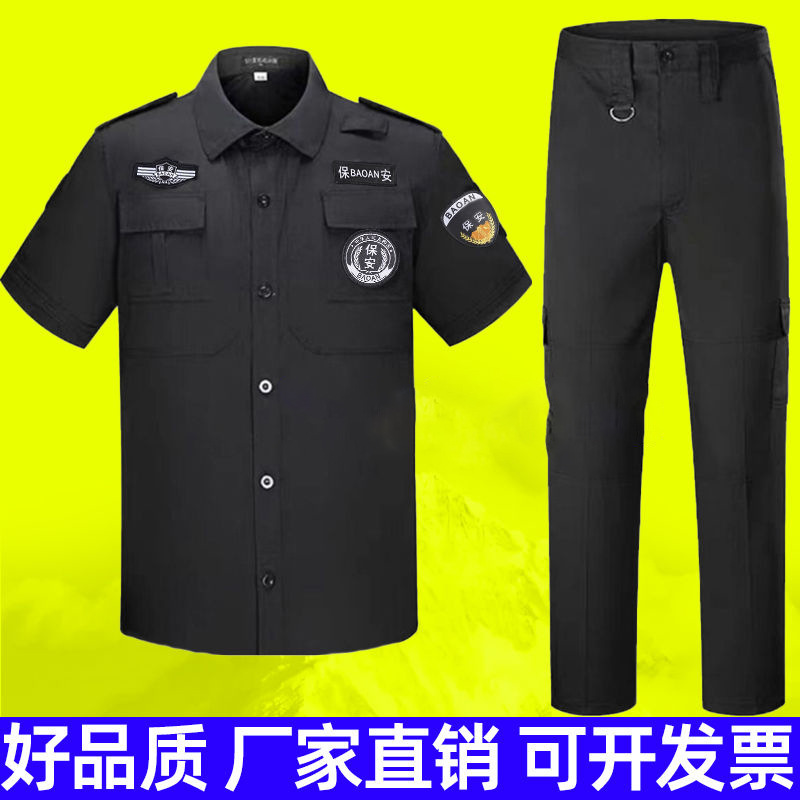 Pakaian Kerja Keamanan Pakaian Pelatihan Warna Hitam Lengan Pendek Model Musim Panas Pakaian Keamanan Seragam Musim Panas Pakaian Keamanan Properti Pakaian Musim Panas