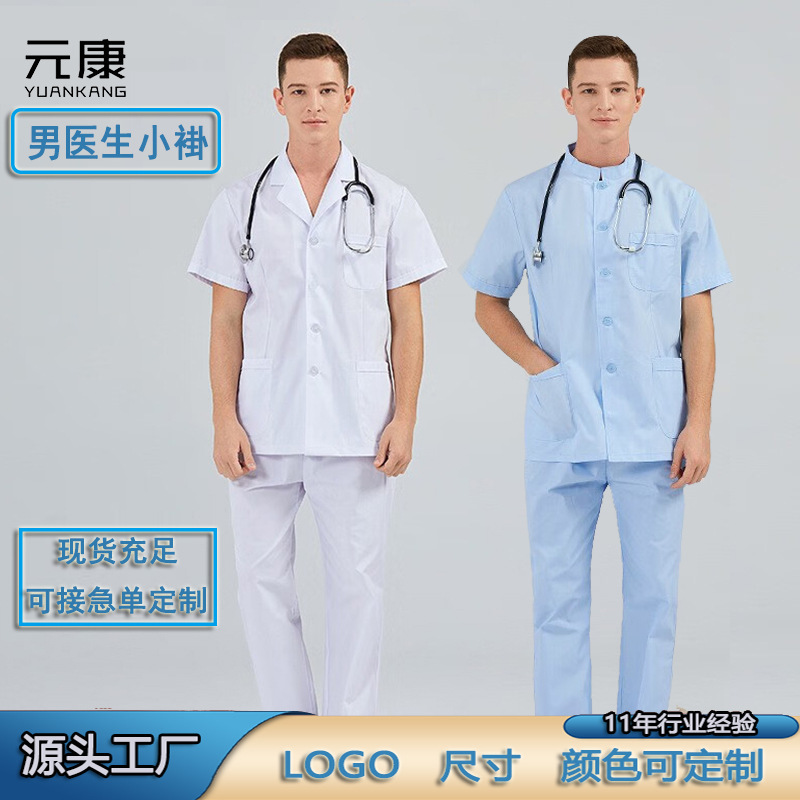 Pakaian dokter pria, overall putih lengan panjang pakaian perawat lengan pendek pakaian pelindung kerja salon kecantikan farmasi oral
