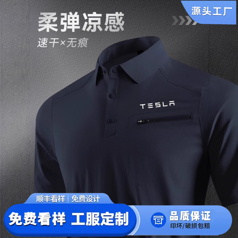 Kaus Kerja Cepat Kering Pakaian Kerja Kustom Logo Musim Panas Perusahaan Tesla 4s Toko Pakaian Kerja Kemeja Polo Lengan Pendek t