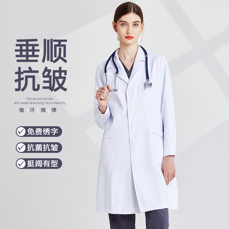 Mantel Putih Kelas Atas Pakaian Kerja Lengan Pendek Panjang Pria Wanita Pakaian Dokter Gigi Mulut Musim Panas Model Tipis Anti Kerut