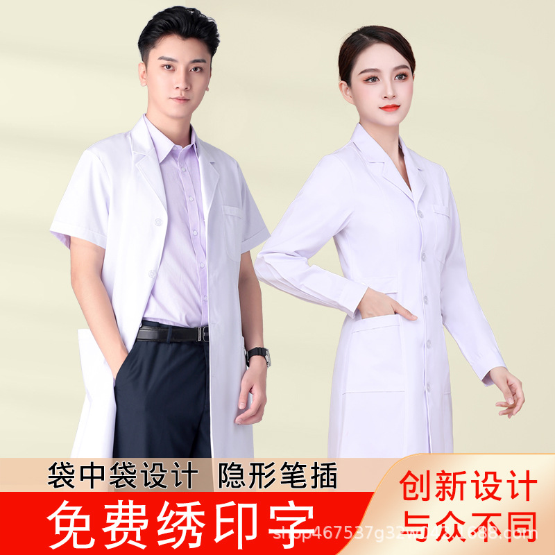 Jaket Putih Kelas Atas Pakaian Dokter Lengan Panjang Pria dan Wanita Laboratorium Tipis Pakaian Kerja Perawat Lengan Pendek Perlindungan Mahasiswa Medis