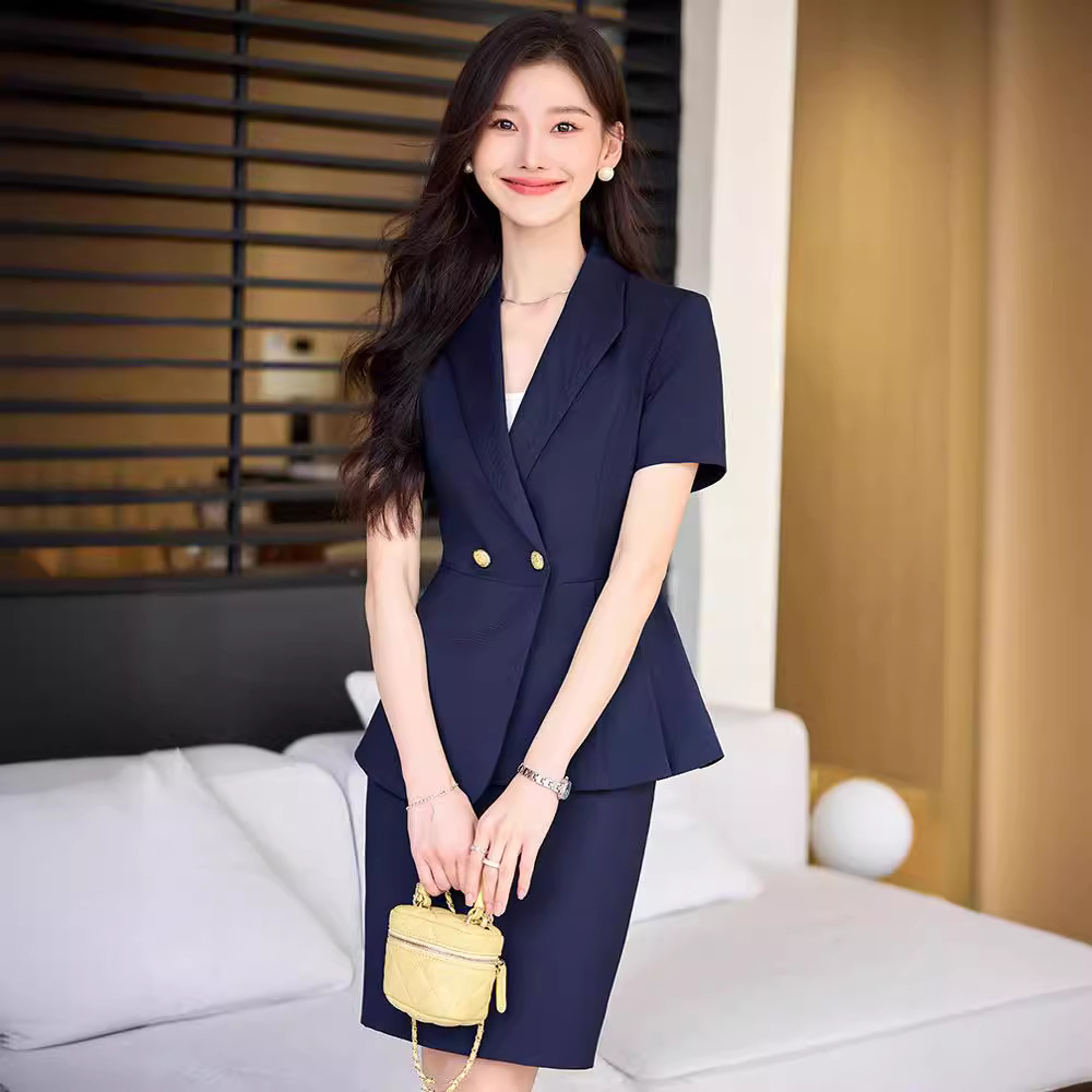Setelan pakaian bisnis wanita tipis pakaian formal pakaian kerja elegan baju kerja lengan pendek perhiasan toko hotel temperamen kelas atas