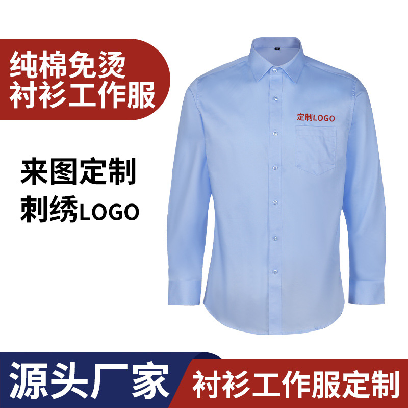 Kemeja Kerja Lengan Panjang Pria Wanita Katun Murni Bebas Setrika Pakaian Kerja Bisa Bordir Logo