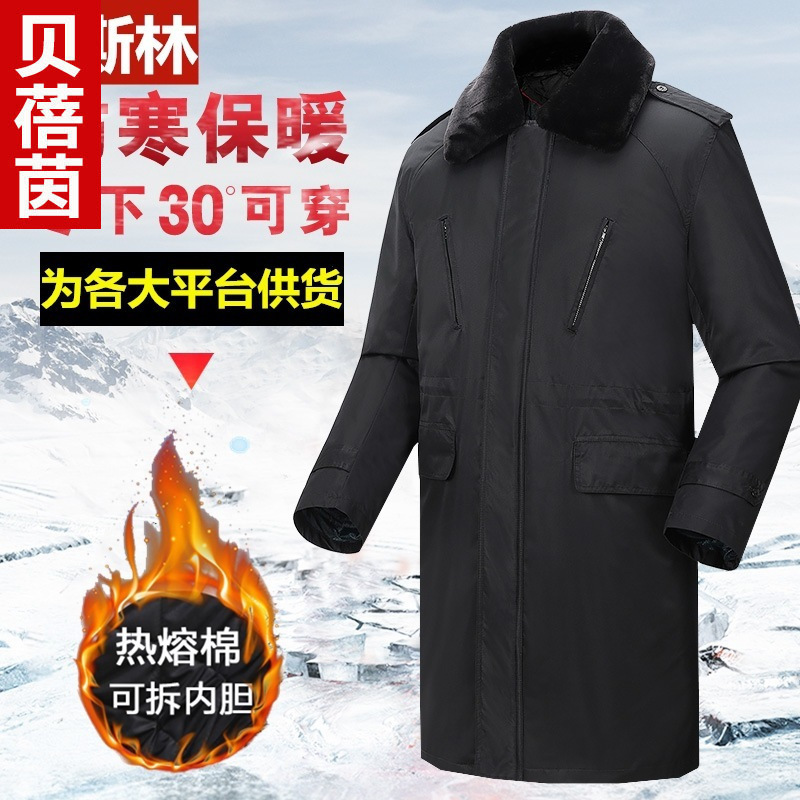 Mantel militer pria musim dingin bulu berjajar tebal panjang tahan dingin cotton-padded mantel Pria properti hitam overall mantel keamanan mantel katun-padded