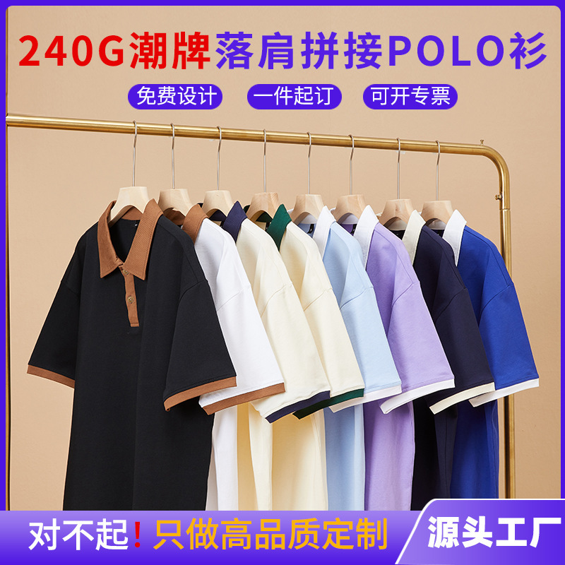 Baju POLO Merek Trendi Kerah Jatuh Bahu Kombinasi Warna Katun Murni Pakaian Kelas Jepang Longgar T-shirt Kerja Logo Bordir